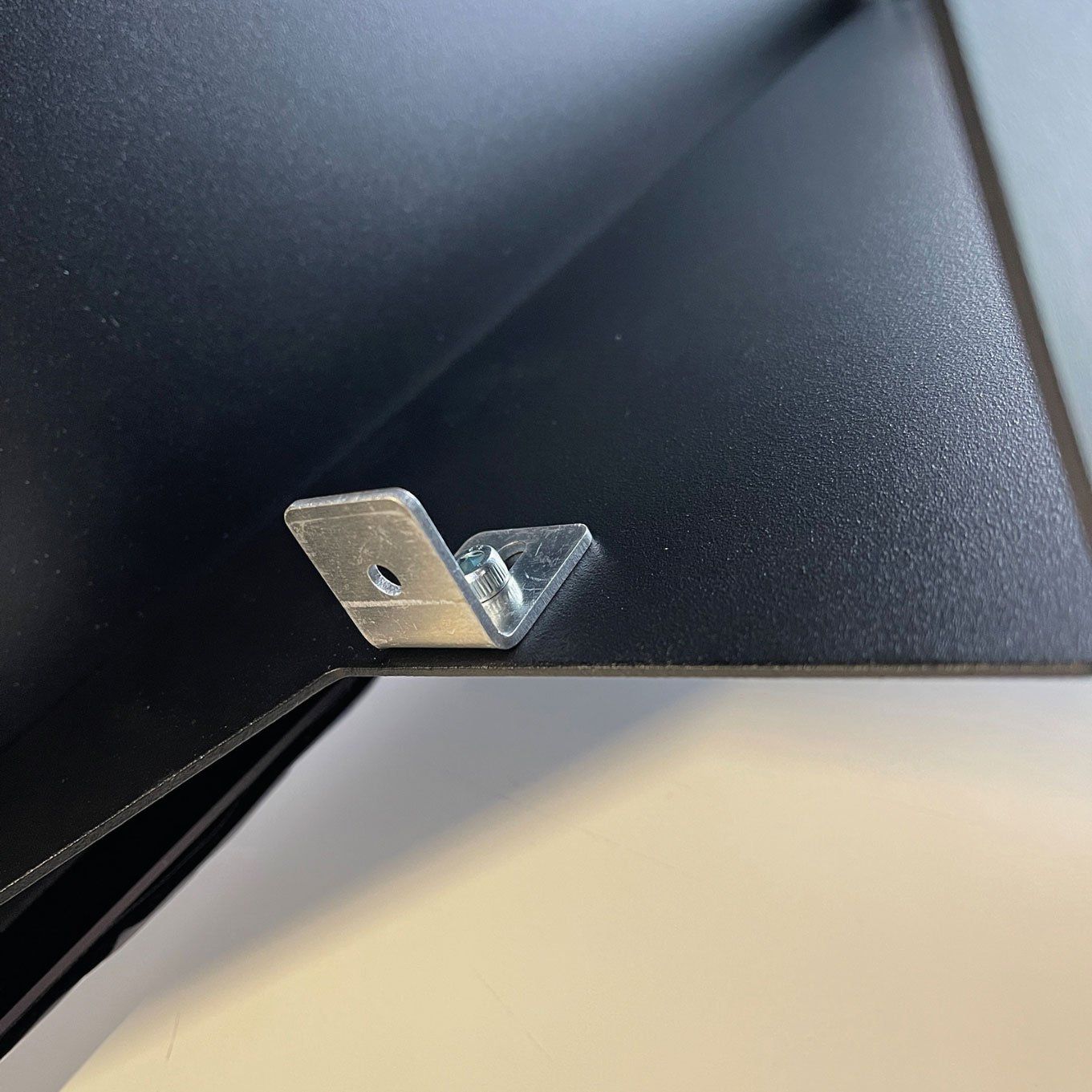 Zur Sicherung gibt es einen kleinen Winkel, der zunächst an die Bohrung im Zwischen-boden mit der Schraube und Mutter befestigt wird.